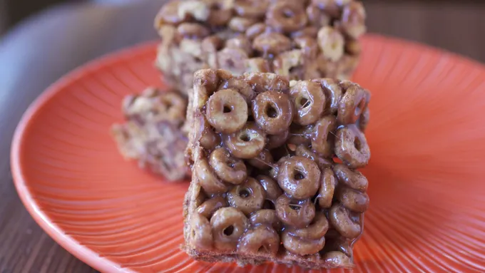 These easy and delicious bars combine Nature Valley™ chocolate oat clusters cereal with a gooey chocolate-marshmallow mixture.
