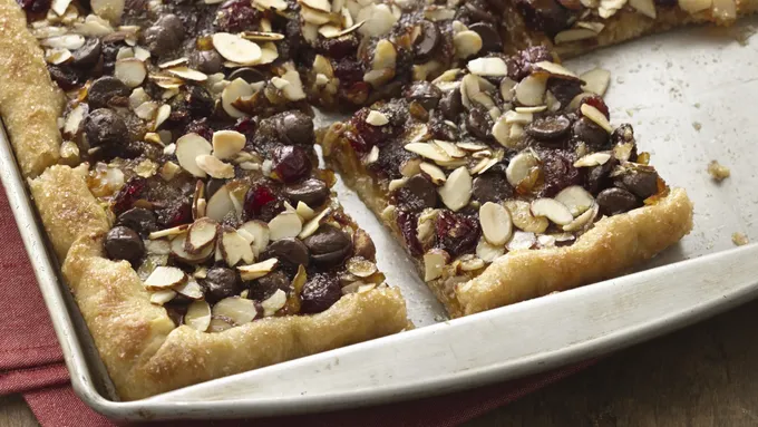 Step3In small microwavable bowl, microwave marmalade uncovered on High 10 seconds. Brush marmalade evenly over cream cheese mixture. Cut crust into 16 wedges, using knife or pizza wheel. Sprinkle chocolate chips evenly over wedges.