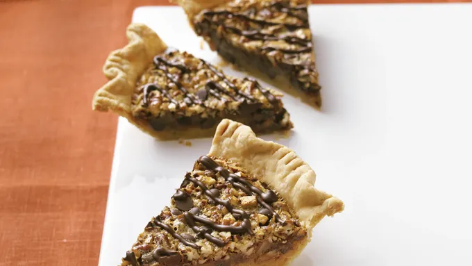 var configuration = {"title":"Chocolate-Pecan Pie","introduction":"If you thought pecan pie was IT, well, we’ve just raised the bar! It looks like it belongs on a fancy restaurant dessert cart, but really, it’s simple to make, when you start with Pillsbury™ pie crust. Chocolate-Pecan Pie takes everything you love about pecan pie and then adds gooey chocolate chips to the filling. You might as well start loosening your belt now.","servingSize":"1 Serving","image":{"small":{"media":"(min-width: 0px)","src":"https://mojo.generalmills.com/api/public/content/fpYDTqu6FkGXlHqTlxWutQ_webp_base.webp?v=87d751ec\u0026t=e724eca7b3c24a8aaa6e089ed9e611fd"},"medium":{"media":"(min-width: 500px)","src":"https://mojo.generalmills.com/api/public/content/fpYDTqu6FkGXlHqTlxWutQ_webp_base.webp?v=87d751ec\u0026t=191ddcab8d1c415fa10fa00a14351227"},"large":{"media":"(min-width: 767px)","src":"https://mojo.generalmills.com/api/public/content/fpYDTqu6FkGXlHqTlxWutQ_webp_base.webp?v=87d751ec\u0026t=191ddcab8d1c415fa10fa00a14351227"},"alt":"Chocolate-Pecan Pie"},"contributor":{"label":"By","name":"Pillsbury Kitchens","profileUrl":"/about-us","displayDate":{"label":"Updated","date":"Nov 14, 2023"}},"ingredientGroups":[{"ingredients":[{"quantity":"1","description":"crust from 1 box (14.1 oz) refrigerated Pillsbury™ Pie Crusts (2 Count), softened as directed on box","productLink":"/products/pie-crust/refrigerated-pie-crust"},{"quantity":"1","description":"cup light corn syrup"},{"quantity":"1/2","description":"cup sugar"},{"quantity":"1/4","description":"cup butter or margarine, melted"},{"quantity":"1","description":"teaspoon vanilla"},{"quantity":"3","description":"eggs"},{"quantity":"1","description":"cup semisweet chocolate chips (6 oz)"},{"quantity":"1 1/2","description":"cups pecan halves"},{"quantity":"10","description":"pecan halves"},{"quantity":"1/2","description":"cup whipping cream, whipped"}]}],"steps":[{"description":"Heat oven to 325°F. Place pie crust in 9-inch glass pie plate as directed on box for One-Crust Filled Pie.","stepShotImageUrl":"//mojo.generalmills.com/api/public/content/yFV9hvDdiUeCh2lFsOVDOg_webp_base.webp?v=bd72dd2b\u0026t=51a43a57af4046789e5a7f20567b1195"},{"description":"In large bowl, beat corn syrup, sugar, butter, vanilla and eggs with electric mixer on medium speed until well blended. Reserve 2 tablespoons chocolate chips for topping. Stir in remaining chocolate chips and 1 1/2 cups pecans. Spread evenly in crust-lined pan.","stepShotImageUrl":"//mojo.generalmills.com/api/public/content/0ySa4cisf0qp1nMh6E0p3w_webp_base.webp?v=8e17c988\u0026t=51a43a57af4046789e5a7f20567b1195"},{"description":"Bake 55 to 65 minutes or until deep golden brown and filling is set. Cool completely, about 1 hour."},{"description":"Line cookie sheet with waxed paper. In small microwavable bowl, microwave reserved 2 tablespoons chocolate chips on Medium (50%) 1 to 1 1/2 minutes or until melted; stir. Dip each of 10 pecan halves in chocolate; place on lined cookie sheet. Refrigerate 15 to 20 minutes or until chocolate is set. Garnish pie with whipped cream and chocolate-dipped pecans. Store in refrigerator.","stepShotImageUrl":"//mojo.generalmills.com/api/public/content/7YC_LJKRk0m6OmW24teVPQ_webp_base.webp?v=f1081a61\u0026t=51a43a57af4046789e5a7f20567b1195"}],"tips":[{"title":"","description":"Our recipe for chocolate pecan pie is simple to make with Pillsbury™ pie crust. The indulgent pecan pie filling includes chocolate chips for another layer of incredible flavor.","category":"Rich Snippet","tipShots":[]},{"title":"","description":"One frozen Pillsbury™ Deep Dish Pie Crust may be substituted for the refrigerated Pillsbury™ Pie Crust in this recipe. Place cookie sheet on oven rack. Heat oven as directed. Prepare filling and follow directions on package for One-Crust Filled Pie.","category":"Serving Suggestions/Menu","tipShots":[]},{"title":"","description":"Whipping cream whips more quickly and gives more volume if both the cream and equipment are cold. Place the bowl and beaters in the freezer 15 minutes before using. Leave the whipping cream in the refrigerator until ready to whip.","category":"Techniques","tipShots":[]},{"title":"","description":"Look for pecan halves near the other nuts in the baking aisle of your grocery store.","category":"Recipe/Ingredient Facts","tipShots":[]},{"title":"","description":"Be sure to get heavy whipping cream, so you will be able to beat it into whipped cream. Other forms of cream don’t contain enough fat to whip properly.","category":"Recipe/Ingredient Facts","tipShots":[]},{"title":"","description":"To get the fluffiest whipped cream, place your bowl and beaters in the freezer for 15 minutes before you whip the cream. Leave your whipping cream in the refrigerator until you’re ready to whip it, as cold cream will whip more quickly and have better volume if it’s cold.","category":"Method Note","tipShots":[]},{"title":"","description":"Rich and indulgent, some think pecan pie must be difficult to make. Surprisingly, it’s one of the easiest pies to make (there’s no peeling or cutting fruit first, like in fruit pies). Our recipe for chocolate pecan pie is a cinch to put together when you start with Pillsbury™ pie crust. We even share how to make chocolate-dipped pecans, for a stunning garnish! Want an even more indulgent chocolate pecan pie? Try our \u003ca href=\u0022https://www.pillsbury.com/recipes/toasted-coconut-pecan-pie/a8defe8e-ecc6-4dd8-8e23-adc4a494422e\u0022\u003ecoconut-pecan\u003c/a\u003e recipe. If you love the flavors but don’t want to make a pie, \u003ca href=\u0022https://www.pillsbury.com/recipes/chocolate-pecan-bars/fe2fabfe-bb08-418a-85bf-3c1cd62aef53\u0022\u003echocolate pecan bars\u003c/a\u003e are a great choice. Happy baking!","category":"Editorial","tipShots":[]},{"title":"","description":"Recipe meets Kitchen Tested criteria. Reviewed as part of SEO improvements Oct. 2019.","category":"Kitchen Tested","tipShots":[]}