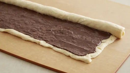 Step3Starting with 1 long side of rectangle, roll up; pinch edge to seal.