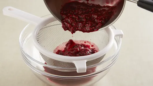 Step6Meanwhile, in 4-quart saucepan, mix sugar, raspberries and 1/4 cup water; bring to a boil over medium-high heat. Break up berries with spatula or wooden spoon if frozen together. Continue to cook 5 minutes, stirring frequently, until berries burst and mixture begins to boil vigorously. Combine cornstarch and 1/4 cup water in a small bowl. Stir into boiling mixture and continue to cook 2 minutes, or until mixture is very thick. Strain sauce through fine mesh strainer. Spoon 1/4 cup sauce over warm crescent ring. Serve with remaining sauce.