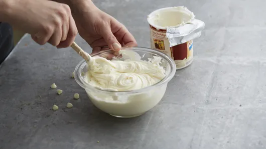 - 1 container ready-to-spread frosting (any white variety)