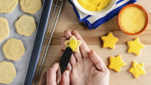 Place stars and smaller flowers 1 inch apart on one cookie sheet. Place larger flowers 2 inches apart on second cookie sheet. Bake smaller cookies 6 to 8 minutes, larger cookies 8 to 10 minutes, or until light golden brown. Remove from cookie sheets to cooling racks. Cool completely, about 10 minutes.