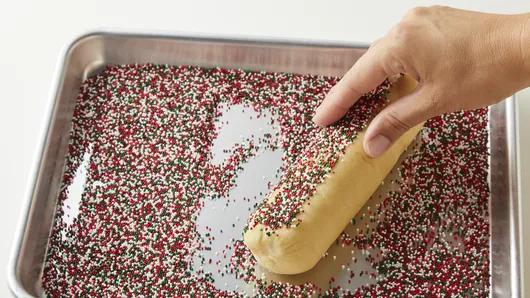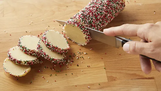 var configuration = {"title":"Christmas Sprinkle Cookies","introduction":"\u003cp\u003eThese festive Christmas Sprinkle Cookies are made with just three simple ingredients: Pillsbury™ Sugar Cookie Dough, flour, and colorful holiday sprinkles. No cookie cutters required! Just roll the dough in sprinkles, slice, and bake for soft sugar cookies with a delightful crunch from the sprinkled edges. This easy slice-and-bake recipe makes enough to share at holiday parties or keep the cookie jar full all season long.\u003c/p\u003e","servingSize":"1 Cookie","image":{"small":{"media":"(min-width: 0px)","src":"https://mojo.generalmills.com/api/public/content/lKEF0IRYTEiPlIly4DJztA_webp_base.webp?v=20a8eea6\u0026t=e724eca7b3c24a8aaa6e089ed9e611fd"},"medium":{"media":"(min-width: 500px)","src":"https://mojo.generalmills.com/api/public/content/lKEF0IRYTEiPlIly4DJztA_webp_base.webp?v=20a8eea6\u0026t=191ddcab8d1c415fa10fa00a14351227"},"large":{"media":"(min-width: 767px)","src":"https://mojo.generalmills.com/api/public/content/lKEF0IRYTEiPlIly4DJztA_webp_base.webp?v=20a8eea6\u0026t=191ddcab8d1c415fa10fa00a14351227"},"alt":"Christmas Sprinkle Cookies"},"contributor":{"label":"By","name":"Pillsbury Kitchens","profileUrl":"/about-us","displayDate":{"label":"Updated","date":"Oct 13, 2025"}},"ingredientGroups":[{"ingredients":[{"quantity":"1","description":"roll (16.5 oz) refrigerated Pillsbury™ Sugar Cookie Dough","productLink":"/products/cookies/refrigerated-cookies/sugar-cookies"},{"quantity":"1/3","description":"cup all-purpose flour"},{"quantity":"1","description":"container (2.1 oz) red, white, and green round decorating decors (about 1/3 cup)"}]}],"steps":[{"description":"\u003cp\u003eIn medium bowl, crumble cookie dough; stir or knead in flour until well mixed. (DO NOT EAT RAW COOKIE DOUGH AFTER COMBINING WITH FLOUR.) Divide dough in half; shape each half into 10-inch log. Pour decorating decors onto a small baking sheet with sides. Roll dough log in decorating decors, pressing into dough. Wrap dough log tightly with plastic wrap. Repeat forming, shaping and rolling with remaining dough. Refrigerate about 1 hour 30 minutes or until firm. Discard any remaining decorating decors after rolling dough logs.\u003c/p\u003e","stepShotImageUrl":"//mojo.generalmills.com/api/public/content/WY43eEosYkqZwr69AvBNuQ_webp_base.webp?v=55b177ac\u0026t=51a43a57af4046789e5a7f20567b1195"},{"description":"\u003cp\u003eHeat oven to 350°F. Unwrap 1 of the dough logs; cut into 20 (1/2-inch) slices. Place 2 inches apart on ungreased cookie sheet, reshaping if necessary.\u003c/p\u003e","stepShotImageUrl":"//mojo.generalmills.com/api/public/content/KiMIst7i20WxMZ71qGwQ-Q_webp_base.webp?v=9361c10c\u0026t=51a43a57af4046789e5a7f20567b1195"},{"description":"\u003cp\u003eBake 10 to 12 minutes or until edges are set. Cool 2 minutes; remove from cookie sheet to cooling rack. Unwrap remaining dough log; repeat slicing and baking. Cool completely, about 30 minutes. Store covered in airtight container.\u003c/p\u003e"}],"tips":[{"title":"","description":"Bake up these easy 3-ingredient Pillsbury™ slice-and-bake sugar cookies rolled in festive sprinkles—perfect for sharing holiday cheer all season long.","category":"Rich Snippet","tipShots":[]},{"title":"","description":"\u003cp\u003eFor best results, bake your sprinkle cookies on the middle oven rack. For even baking, it’s best to bake one sheet at a time.\u003c/p\u003e","category":"Recipe/Ingredient Facts","tipShots":[]},{"title":"","description":"\u003cp\u003eSwitch up the round decorating decors to match any occasion—pastels for spring, brights for birthdays, or team colors for game day. They press easily into the dough and keep their color and crunch when baked.\u003c/p\u003e","category":"Substitution","tipShots":[]},{"title":"","description":"\u003cp\u003eA quick check with a kitchen ruler while slicing the cookie dough logs helps keep your cookies evenly sized—so they bake up just right.\u003c/p\u003e","category":"Method Note","tipShots":[]},{"title":"","description":"\u003cp\u003eKitchen Tested: 10/2025\u003c/p\u003e","category":"Kitchen Tested","tipShots":[]}],"kitchenTips":[{"title":"","description":"\u003cp\u003eFor best results, bake your sprinkle cookies on the middle oven rack. For even baking, it’s best to bake one sheet at a time.\u003c/p\u003e","category":"Recipe/Ingredient Facts","tipShots":[]},{"title":"","description":"\u003cp\u003eSwitch up the round decorating decors to match any occasion—pastels for spring, brights for birthdays, or team colors for game day. They press easily into the dough and keep their color and crunch when baked.\u003c/p\u003e","category":"Substitution","tipShots":[]},{"title":"","description":"\u003cp\u003eA quick check with a kitchen ruler while slicing the cookie dough logs helps keep your cookies evenly sized—so they bake up just right.\u003c/p\u003e","category":"Method Note","tipShots":[]}],"additionalContent":[{"title":"Recipe Ingredients ","description":"\u003cp\u003eThese Christmas Sprinkle Cookies come together with just 3 simple ingredients—here’s what you’ll need.\u003c/p\u003e\u003cp\u003e\u003cstrong\u003ePillsbury™ Sugar Cookie Dough:\u003c/strong\u003e Refrigerated sugar cookie dough makes this recipe super easy. It delivers a deliciously chewy cookie with consistent results every time—convenient and simple to prepare.\u003c/p\u003e\u003cp\u003e\u003cstrong\u003eFlour:\u003c/strong\u003e Flour helps the dough hold its shape when sliced and baked. It also firms the dough, so it’s easier to roll in sprinkles without losing shape.\u003c/p\u003e\u003cp\u003eNote: While Pillsbury™ Cookie Dough is safe to enjoy raw on its own, once flour is added, wait until the cookies are fully baked before tasting—for food safety.\u003c/p\u003e\u003cp\u003e\u003cstrong\u003eRound Decorating Decors:\u003c/strong\u003e These colorful round sprinkles—also called nonpareils—add a festive look and a crunchy texture to