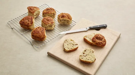 Step2Spray griddle or 10-inch skillet with cooking spray; heat griddle to 375°F or heat skillet over medium heat. Slice each roll in half crosswise.