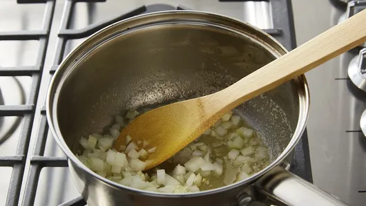 Step2In 2-quart saucepan, melt butter over medium heat. Add onion; cook 4 to 5 minutes, stirring frequently. Add garlic; cook about 1 minute, stirring frequently, until onion is tender.