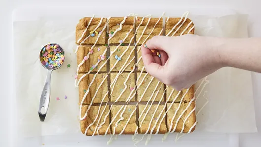 These cute-as-can-be Confetti Cookie Bars prep in as few as five minutes and require just three ingredients to make: Pillsbury™ sugar cookie dough, candy sprinkles and a melted white chocolate drizzle. However you decide to decorate them—with pastel flower sprinkles for spring, rainbow jimmies for a birthday, red and green colored sugars for Christmas, etc.—they’re sure to be the life of the party!
