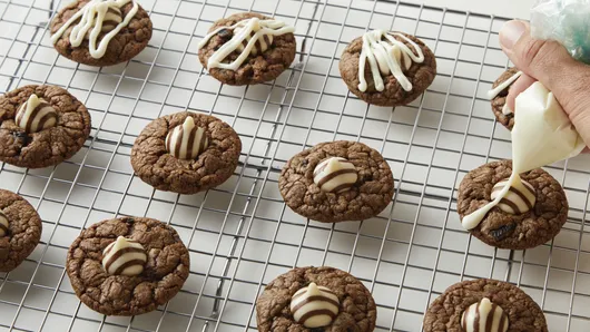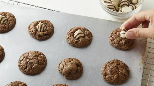 var configuration = {"title":"Cookies and Cream Blossoms","introduction":"Calling all cookies and cream fans! These fun and easy blossom cookies play up the popular flavor profile with a delightful combination of Oreo™ cookies and both dark and white chocolate. Serve with a glass of milk or a mug of hot cocoa for the ideal holiday treat experience!","servingSize":"1 Cookie","image":{"small":{"media":"(min-width: 0px)","src":"https://mojo.generalmills.com/api/public/content/ZP7nhYZY3kGsPyKxBIO8FQ_webp_base.webp?v=33bafa21\u0026t=e724eca7b3c24a8aaa6e089ed9e611fd"},"medium":{"media":"(min-width: 500px)","src":"https://mojo.generalmills.com/api/public/content/ZP7nhYZY3kGsPyKxBIO8FQ_webp_base.webp?v=33bafa21\u0026t=191ddcab8d1c415fa10fa00a14351227"},"large":{"media":"(min-width: 767px)","src":"https://mojo.generalmills.com/api/public/content/ZP7nhYZY3kGsPyKxBIO8FQ_webp_base.webp?v=33bafa21\u0026t=191ddcab8d1c415fa10fa00a14351227"},"alt":"Cookies and Cream Blossoms"},"contributor":{"label":"By","name":"Pillsbury Kitchens","profileUrl":"/about-us","displayDate":{"label":"Updated","date":"Nov 6, 2025"}},"ingredientGroups":[{"ingredients":[{"quantity":"1","description":"roll (16.5 oz) refrigerated Pillsbury™ Sugar Cookie Dough","productLink":"/products/cookies/refrigerated-cookies/sugar-cookies"},{"quantity":"3","description":"tablespoons unsweetened baking cocoa"},{"quantity":"3/4","description":"cup chopped Oreo chocolate sandwich cookies (about 6 cookies)"},{"quantity":"30","description":"HERSHEY’S HUGS Milk Chocolates Hugged by White Creme Candies, unwrapped"},{"quantity":"1/4","description":"cup white vanilla baking chips"}]}],"steps":[{"description":"Heat oven to 350°F. "},{"description":"In large bowl, break up cookie dough; stir or knead in cocoa and chopped cookies until well mixed. Shape dough into 30 (1-inch) balls. Place 1 inch apart on ungreased cookie sheets.","stepShotImageUrl":"//mojo.generalmills.com/api/public/content/FJruz3Qrkk2-anwg_fVFVw_webp_base.webp?v=a5ad4360\u0026t=51a43a57af4046789e5a7f20567b1195"},{"description":"Bake 8 to 12 minutes or until edges are set. Do not overbake. Immediately, top each cookie with 1 chocolate, pressing down firmly so cookie cracks around edge; remove from cookie sheets to cooling racks. Cool completely, about 2 hours or until chocolate is set.","stepShotImageUrl":"//mojo.generalmills.com/api/public/content/e4aTsFGfw0eLZl8iMXuhXQ_webp_base.webp?v=5e11ddef\u0026t=51a43a57af4046789e5a7f20567b1195"},{"description":"In small bowl, microwave white vanilla baking chips uncovered on High 30 to 45 seconds or until chips can be stirred smooth. Drizzle over cooled cookies. Let stand about 15 minutes or until drizzle is set. Store in airtight container in refrigerator up to 1 week.","stepShotImageUrl":"//mojo.generalmills.com/api/public/content/jSCFyq7buEaDXuCNWmaJCA_webp_base.webp?v=5a84993b\u0026t=51a43a57af4046789e5a7f20567b1195"}],"tips":[{"title":"","description":"For best results, bake cookies one sheet at a time on the center oven rack.","category":"Techniques","tipShots":[]},{"title":"","description":"To easily drizzle melted chips onto cookies, cool slightly, then spoon into a resealable food-storage plastic bag. Cut a small tip off one corner of the bag, then drizzle onto cookies.","category":"Techniques","tipShots":[]},{"title":"","description":"\u003cp\u003eUse any of your favorite HERSHEY\u0027S KISSES chocolates in this recipe.\u003c/p\u003e","category":"Substitution","tipShots":[]},{"title":"","description":"Store cookies in an airtight container in single layers between parchment or waxed paper in refrigerator up to 1 week. Cookies can be frozen up to 2 months. To thaw, let stand uncovered at room temperature 1 to 2 hours.","category":"Storage","tipShots":[]},{"title":"","description":"Keep up the holiday cheer with even more of our favorite \u003ca href=\u0022https://www.pillsbury.com/recipes/dish-type/cookies/christmas\u0022 target=\u0022_blank\u0022\u003eChristmas Cookie\u003c/a\u003e recipes.","category":"Editorial","tipShots":[]},{"title":"","description":"Kitchen Tested - 7/2019","category":"Kitchen Tested","tipShots":[]}],"kitchenTips":[{"title":"","description":"For best results, bake cookies one sheet at a time on the center oven rack.","category":"Techniques","tipShots":[]},{"title":"","description":"To easily drizzle melted chips onto cookies, cool slightly, then spoon into a resealable food-storage plastic bag. Cut a small tip off one corner of the bag, then drizzle onto cookies.","category":"Techniques","tipShots":[]},{"title":"","description":"\u003cp\u003eUse any of your favorite HERSHEY\u0027S KISSES chocolates in this recipe.\u003c/p\u003e","category":"Substitution","tipShots":[]},{"title":"","description":"Store cookies in an airtight container in single layers between parchment or waxed paper in refrigerator up to 1 week. Cookies can be frozen up to 2 months. To thaw, let stand uncovered at room temperature 1 to 2 hours.","category":"Storage","tipShots":[]}],"additionalContent":[],"faq":[],"tipCategories":[{"categoryName":"Editorial","heading":"More About This Recipe","cssClass":"recipePartStory","expandOnInit":false,"expandText":"More +","collapseText":"Less -","expandEventName":"","collapseEventName":"","image":"","tips":[{"title":"","description":"Keep up the holiday cheer with even more of our favorite \u003ca href=\u0022https://www.pillsbury.com/recipes/dish-type/cookies/christmas\u0022 target=\u0022_blank\u0022\u003eChristmas Cookie\u003c/a\u003e recipes.","category":"Editorial","tipShots":[]}],"isExpandable":false},{"categoryName":"Kitchen Tested","heading":"More About This Recipe","cssClass":"recipePartStory","expandOnInit":false,"expandText":"More +","collapseText":"Less -","expandEventName":"","collapseEventName":"","image":"","tips":[{"title":"","description":"Kitchen Tested - 7/2019","category":"Kitchen Tested","tipShots":[]}],"isExpandable":false}],"nutritionInfo":{"configuration":{"showAsTable":fals
