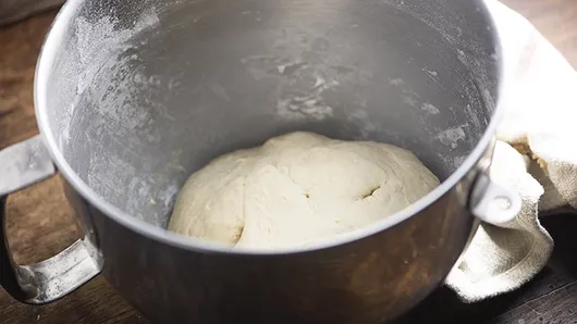 Step1Place 1/4 cup of water in the bowl of a stand mixer fitted with a dough hook. Sprinkle the yeast over the top and let sit until foamy, about 5 minutes.