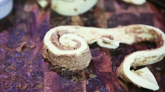 Step3Set aside icing from cinnamon rolls. Separate each can of dough into 5 rolls; unroll each roll, and cut each in half.