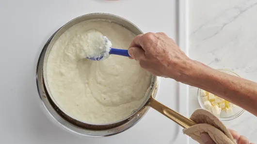 var configuration = {"title":"Creamy Grits","introduction":"\u003cp\u003eIf you’re not from the south, making grits might seem intimidating. This simple creamy grits recipe will change your mind! \u003c/p\u003e\n\u003cp\u003eGrits are made from ground, dried corn and come in many varieties, such as stone-ground, quick, and instant versions. Stone-ground grits are very coarse and require soaking followed by low and slow cooking for hours, while quick and instant varieties get grits on the table fast. To make our interpretation of this southern staple, we opted for quick grits, to serve up bowls of creamy, filling comfort food in minutes.\u003c/p\u003e\n\n\u003cp\u003eUsing quick-cooking grits makes this southern comfort food recipe fast and easy. With just a few common ingredients, you can make a satisfying side for breakfast, lunch, or dinner in just a few minutes, using just one pan. This versatile dish plays a starring role in southern breakfasts, but it also serves as an excellent supporting actor at lunch and dinner tables. \u003c/p\u003e\n\n\u003cp\u003eWhether you top them with savory, spicy New Orleans-style barbecue shrimp, serve them alongside a thick slice of ham with coffee-spiked redeye gravy, or just tuck into a bowl of plain grits topped with a little cracked black pepper, get ready to add creamy grits to your culinary repertoire.\u003c/p\u003e\n","servingSize":"1 Cup","image":{"small":{"media":"(min-width: 0px)","src":"https://mojo.generalmills.com/api/public/content/2AdtspfbQm2dr_ctSGgJOw_webp_base.webp?v=f6ecb2d8\u0026t=e724eca7b3c24a8aaa6e089ed9e611fd"},"medium":{"media":"(min-width: 500px)","src":"https://mojo.generalmills.com/api/public/content/2AdtspfbQm2dr_ctSGgJOw_webp_base.webp?v=f6ecb2d8\u0026t=191ddcab8d1c415fa10fa00a14351227"},"large":{"media":"(min-width: 767px)","src":"https://mojo.generalmills.com/api/public/content/2AdtspfbQm2dr_ctSGgJOw_webp_base.webp?v=f6ecb2d8\u0026t=191ddcab8d1c415fa10fa00a14351227"},"alt":"Creamy Grits"},"contributor":{"label":"By","name":"Pillsbury Kitchens","profileUrl":"/about-us","displayDate":{"label":"Updated","date":"Aug 27, 2024"}},"ingredientGroups":[{"ingredients":[{"quantity":"3","description":"cups water"},{"quantity":"1","description":"cup heavy whipping cream"},{"quantity":"3/4","description":"teaspoon salt"},{"quantity":"1","description":"cup quick-cooking grits"},{"quantity":"4","description":"tablespoons butter, diced"}]}],"steps":[{"description":"In 4-quart saucepan, heat water, whipping cream, and salt to boiling over high heat. ","stepShotImageUrl":"//mojo.generalmills.com/api/public/content/J2f83czFTKWXlkimRm6dtg_webp_base.webp?v=c7dac0d9\u0026t=51a43a57af4046789e5a7f20567b1195"},{"description":"Slowly stir grits into water mixture. ","stepShotImageUrl":"//mojo.generalmills.com/api/public/content/oqihC4kuTpK5r-Q7mCuDVw_webp_base.webp?v=da979bc6\u0026t=51a43a57af4046789e5a7f20567b1195"},{"description":"Reduce heat to medium-low; cover. Cook 5 to 7 minutes, stirring occasionally, until thickened. Remove from heat.","stepShotImageUrl":"//mojo.generalmills.com/api/public/content/XmbHmnw2TsOmXPxWENP9FQ_webp_base.webp?v=c862ee83\u0026t=51a43a57af4046789e5a7f20567b1195"},{"description":"Stir in butter. To serve, top with additional butter, if desired.","stepShotImageUrl":"//mojo.generalmills.com/api/public/content/HcbmGTA7S3m6eaMxZ8Vu9Q_webp_base.webp?v=4bfb4cac\u0026t=51a43a57af4046789e5a7f20567b1195"}],"tips":[{"title":"","description":"Creamy, comforting grits are fast and easy to make with our recipe that pairs quick-cooking grits with indulgent heavy whipping cream.","category":"Rich Snippet","tipShots":[]},{"title":"","description":"Spray saucepan with cooking spray before adding water mixture for easier cleanup.","category":"Method Note","tipShots":[]},{"title":"","description":"Don’t forget to stir! Also, when stirring the grits, make sure to use your spatula or spoon on the edges where the bottom of the pan meets the side.","category":"Method Note","tipShots":[]},{"title":"","description":"Stir the grits in slowly, since adding them too quickly can cause the mixture to overflow. And creamy grits are delightful to eat; they’re much less fun to clean off your stovetop.","category":"Method Note","tipShots":[]},{"title":"","description":"Try serving with Pillsbury™ Grands!™ Flaky Layers Biscuits topped with your favorite jam.","category":"Serving Suggestions/Menu","tipShots":[]},{"title":"","description":"Kitchen Tested: July 2024","category":"Kitchen Tested","tipShots":[]}],"kitchenTips":[{"title":"","description":"Spray saucepan with cooking spray before adding water mixture for easier cleanup.","category":"Method Note","tipShots":[]},{"title":"","description":"Don’t forget to stir! Also, when stirring the grits, make sure to use your spatula or spoon on the edges where the bottom of the pan meets the side.","category":"Method Note","tipShots":[]},{"title":"","description":"Stir the grits in slowly, since adding them too quickly can cause the mixture to overflow. And creamy grits are delightful to eat; they’re much less fun to clean off your stovetop.","category":"Method Note","tipShots":[]},{"title":"","description":"Try serving with Pillsbury™ Grands!™ Flaky Layers Biscuits topped with your favorite jam.","category":"Serving Suggestions/Menu","tipShots":[]}],"additionalContent":[{"title":"Ingredients for Creamy Grits","description":"\u003cp\u003eWondering what ingredients you’ll need for our grits recipe? Just a few simple ingredients are necessary for fast, creamy grits.\u003c/p\u003e\n\n\u003cp\u003e\u003cb\u003eCream:\u003c/b\u003e While standard quick grits are prepared with water, we’ve added heavy whipping cream as well for a super rich, decadent recipe that comes together in a snap.\u003c/p\u003e\n\n\u003cp\u003e\u003cb\u003eSalt:\u003c/b\u003e All you need to season these simple, creamy grits is salt. Other seasonings can be added after cooking, if desired.\u003c/p\u003e\n\n\u003cp\u