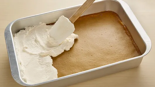 Step5In medium bowl, beat remaining 1 1/4 cups whipping cream and remaining 2 tablespoons chai concentrate with electric mixer on high speed until soft peaks form. Spread evenly onto bars. Refrigerate 1 hour before serving.