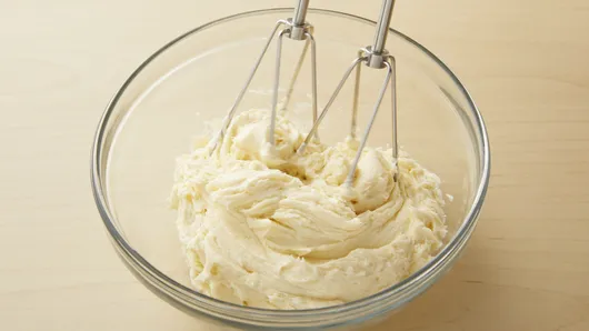 Step2In small bowl using handheld blender or mixer, beat 1 package (8 oz) cream cheese, softened, until creamy. Add 1/4 cup sugar and 1 teaspoon vanilla; blend until well combined. Set aside.