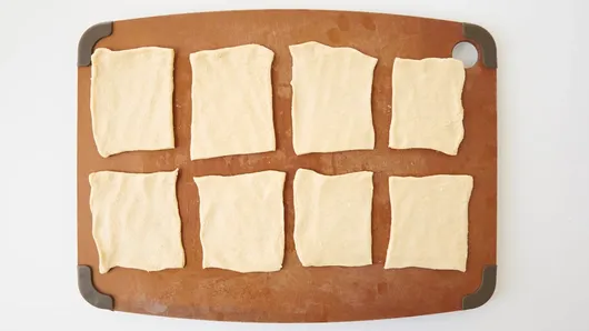Step2If using crescent rolls: Unroll dough; separate into 4 rectangles. Press each into 8x4-inch rectangle, firmly pressing perforations to seal. If using dough sheet: Unroll dough; cut into 4 rectangles. Press each into 8x4-inch rectangle. Cut each in half crosswise, making 8 squares.