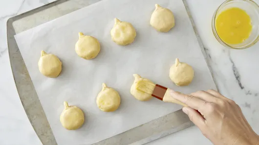 Step4Generously brush entire pumpkin with beaten egg. Bake 10 to 12 minutes or until golden brown.