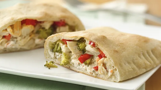 Step3Unroll dough; separate into 8 triangles. Top each triangle with 1/4 cup chicken and one-eighth of the broccoli-cheese mixture. Bring corners up and over filling, enclosing it; pinch seams to seal.