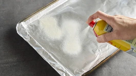 Heat the oven and cover the pan (including sides) with foil. Lightly spray the pan with cooking spray to prevent the fish from sticking.