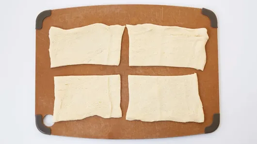 Step2If using crescent rolls: Unroll dough; separate dough into 4 rectangles. Firmly press perforations to seal. If using dough sheet: Unroll dough; cut into 4 rectangles.