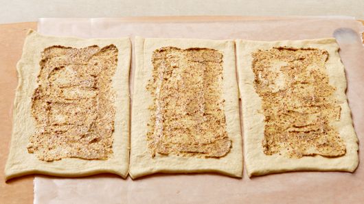 In small bowl, mix mustard and cumin. Unroll dough sheets on work surface. Cut each sheet into thirds. Press each third into 7 1/2x4 1/2-inch rectangle. Spread mustard mixture evenly over each rectangle to within 1/2 inch of edges.