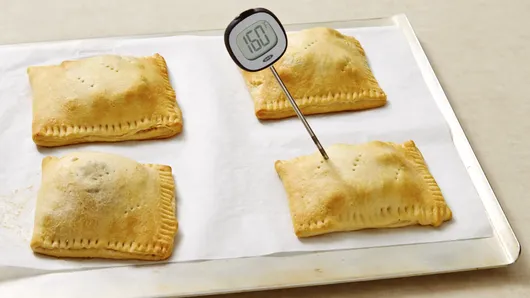 Step4Bake 15 to 18 minutes or until golden brown and meat thermometer inserted in center of pockets reads 160°F.