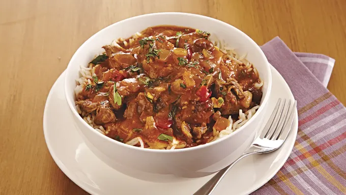 Progresso® beef-flavored broth provides a simple addition to this curried lamb and sweet potato stew. Hearty slow-cooked dinner served over couscous!