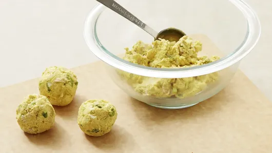 Step2In medium bowl, mix cream cheese and curry powder until smooth. Stir in chicken, green onions and water chestnuts. Shape mixture into 8 (1 1/2-inch) balls, about 2 tablespoons each.