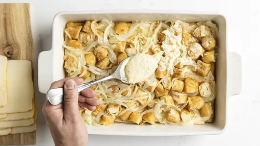 Cozy, cheesy, and baked to perfection, this twist on a classic cordon bleu is perfect for family dinner. Traditionally a French dish, “cordon bleu” translates to “blue ribbon.” With a whole host of distinct and beloved flavors, this recipe lives up to its name by being a blue-ribbon, top-tier dinner for any night of the week.