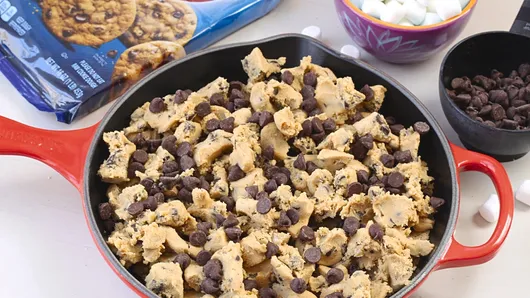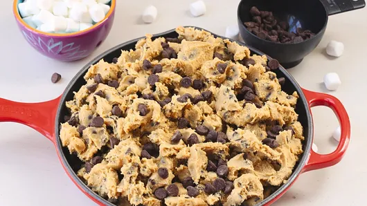 Step6Sprinkle 3/4 cup miniature marshmallows and remaining chocolate chips over top of hot cookie. Place skillet under broiler; broil until marshmallows are puffed and slightly golden. Cool slightly, about 5 to 10 minutes, before serving warm.
