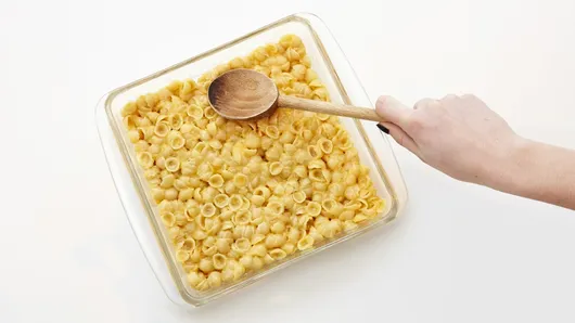 Step1Line bottom of 8-inch square (2-quart) baking dish with cooking parchment paper. Spray with cooking spray; set aside. Make macaroni & cheese as directed on box; mix in shredded cheese. Spread mixture evenly in baking dish; press top of mixture firmly with wooden spoon or piece of waxed paper. Cover loosely, and refrigerate until firm and set, at least 2 hours.
