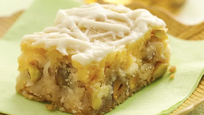 Step3In small microwavable bowl, place remaining 1/2 cup white chocolate chunks and oil. Microwave on High 45 seconds. Stir until smooth. If necessary, microwave an additional 15 seconds. Drizzle over bars.