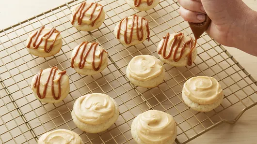 What could be better than sugar cookies with dulce de leche icing? Iced cookies with extra dulce de leche drizzle, of course! These incredible dulce de leche cookies taste like they took all day to make, but are actually super easy, getting a jump-start from Pillsbury™ refrigerated sugar cookie dough. After that, it only takes four more ingredients and minimal prep to make cookies that taste like they came straight from the bakery. Make them for your next holiday party, or any special day when the sweet tooth craving strikes.