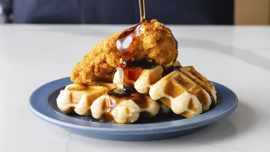 var configuration = {"title":"Easiest-Ever Chicken and Waffles","introduction":"\u003cp\u003eBring a little comfort and a lot of flavor to your table with our easiest-ever chicken and waffles recipe. This Southern-inspired classic comes together with just a few simple ingredients, including a clever shortcut: we use Pillsbury™ Grands!™ Biscuits to make the waffles! That means no mixing and minimal prep—perfect for busy weeknights or relaxed weekend brunches.\u003c/p\u003e\u003cp\u003eWhether you’re making memories over a cozy breakfast-for-dinner or treating the family to something special on a Sunday morning, this dish delivers crispy, savory chicken paired with warm, golden waffles in every bite. Add a drizzle of syrup and a side of smiles, and you’ve got a meal everyone will want on repeat.\u003c/p\u003e","servingSize":"1 Serving","image":{"small":{"media":"(min-width: 0px)","src":"https://mojo.generalmills.com/api/public/content/-0aNLxDwRwiUQaavQ_65yw_webp_base.webp?v=423811ad\u0026t=e724eca7b3c24a8aaa6e089ed9e611fd"},"medium":{"media":"(min-width: 500px)","src":"https://mojo.generalmills.com/api/public/content/-0aNLxDwRwiUQaavQ_65yw_webp_base.webp?v=423811ad\u0026t=191ddcab8d1c415fa10fa00a14351227"},"large":{"media":"(min-width: 767px)","src":"https://mojo.generalmills.com/api/public/content/-0aNLxDwRwiUQaavQ_65yw_webp_base.webp?v=423811ad\u0026t=191ddcab8d1c415fa10fa00a14351227"},"alt":"Easiest-Ever Chicken and Waffles"},"contributor":{"label":"By","name":"Jocelyn Delk Adams","displayDate":{"label":"Updated","date":"Aug 11, 2025"}},"ingredientGroups":[{"ingredients":[{"quantity":"1","description":"bag (1.5 lb) frozen fried chicken tenders"},{"quantity":"1","description":"can (16.3 oz) refrigerated Pillsbury™ Grands!™ Flaky Layers Original Biscuits (8 Count)","productLink":"/products/biscuits/grands-refrigerated-biscuits/flaky-layers-buttermilk"}]},{"name":"Toppings, if desired","ingredients":[{"quantity":"","description":"Melted salted butter"},{"quantity":"","description":"Maple syrup"}]}],"steps":[{"description":"Make chicken tenders as directed on package.","stepShotImageUrl":"//mojo.generalmills.com/api/public/content/wGSHYLKNSBGZnAfGr_2nog_webp_base.webp?v=3baa0d94\u0026t=51a43a57af4046789e5a7f20567b1195"},{"description":"\u003cp\u003eMeanwhile, spray waffle maker with cooking spray; heat as directed by manufacturer.\u003c/p\u003e","stepShotImageUrl":"//mojo.generalmills.com/api/public/content/Hg-Lv4piQ4mkCYY7LhnVwQ_webp_base.webp?v=5fff1395\u0026t=51a43a57af4046789e5a7f20567b1195"},{"description":"\u003cp\u003eSeparate dough into 8 biscuits.\u003c/p\u003e","stepShotImageUrl":"//mojo.generalmills.com/api/public/content/h3l2KtoFTRSboIte4hQ0dA_webp_base.webp?v=95101b57\u0026t=51a43a57af4046789e5a7f20567b1195"},{"description":"\u003cp\u003eAdd each biscuit one at a time to heated waffle maker; close lid, cook up to 3 minutes or until golden brown, and remove. Repeat, starting with spraying the waffle maker until all waffles are complete.\u003c/p\u003e","stepShotImageUrl":"//mojo.generalmills.com/api/public/content/rRQFnm79RiKH9ebyGR6RcA_webp_base.webp?v=e318de45\u0026t=51a43a57af4046789e5a7f20567b1195"},{"description":"\u003cp\u003eTo assemble, stack two waffles on top of each other, then carefully place 1 or 2 prepared chicken tenders on top of the stack.\u003c/p\u003e","stepShotImageUrl":"//mojo.generalmills.com/api/public/content/FSxhUwI5Tc6N_MoLpWLt0Q_webp_base.webp?v=3275fe0a\u0026t=51a43a57af4046789e5a7f20567b1195"},{"description":"\u003cp\u003eDrizzle with butter and syrup.\u003c/p\u003e","stepShotImageUrl":"//mojo.generalmills.com/api/public/content/zXgoH-lgQXyY2BZ8j_tSGA_webp_base.webp?v=c6136e6c\u0026t=51a43a57af4046789e5a7f20567b1195"}],"tips":[{"title":"","description":"Easy chicken and waffles made with biscuit waffles and frozen chicken tenders. A quick family favorite perfect for breakfast, brunch, or dinner!","category":"Rich Snippet","tipShots":[]},{"title":"","description":"While any waffle maker will work, Belgian waffle makers work best due to the larger grid of the appliance.","category":"Recipe/Ingredient Facts","tipShots":[]},{"title":"","description":"Keep waffles warm by covering with foil.","category":"Techniques","tipShots":[]},{"title":"TIP FROM THE Doughboy","description":"\u003cp\u003eStack a waffle on top to make a chicken sandwich!\u003c/p\u003e","category":"Pillsbury Highlight","tipShots":[]}],"kitchenTips":[{"title":"","description":"While any waffle maker will work, Belgian waffle makers work best due to the larger grid of the appliance.","category":"Recipe/Ingredient Facts","tipShots":[]},{"title":"","description":"Keep waffles warm by covering with foil.","category":"Techniques","tipShots":[]}],"additionalContent":[{"title":"Recipe Ingredients ","description":"\u003cp\u003eYou only need two simple ingredients to make this tasty twist on chicken and waffles. It doesn’t get much easier—or more delicious—than this!\u003c/p\u003e\u003cp\u003e\u003cstrong\u003ePillsbury™ Grands!™ Flaky Layers Original Biscuits: \u003c/strong\u003eNot only are these an easy shortcut (we’re talking no mixing or messy prep!), but they’re also the perfect size for a waffle.\u003c/p\u003e\u003cp\u003e\u003cstrong\u003eFrozen Chicken Tenders: \u003c/strong\u003eThese are a family favorite for a reason. They’re crispy, kid-approved, and make this dish easy to prepare.\u003c/p\u003e\u003cp\u003e\u003cstrong\u003eOther Ingredients: \u003c/strong\u003eAll that’s left are the toppings, and they’re up to you! We love our chicken and waffles with butter and syrup.\u003c/p\u003e","category":"SEO Content_1","tipShots":[{"name":"ExtraTextTypeImageMediumUrl","sortOrder":1,"url":"//mojo.generalmills.com/api/public/content/zzDgt0IiQgiHa5oF54LNUA_webp_base.webp?v=b888dc37\u0026t=51a43a57af4046789e5a7f20567b1195"}]},{"title":"How to Make Easiest-Ever Chicken and Waffles","description":"\u003cp\u003eThis easy take on chicken and waffles comes together i