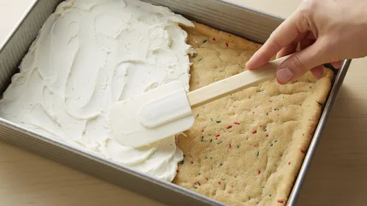 - Sugar cookies are a holiday dessert tray classic, but these sugar cookie bars make them easier and even more festive than before. Instead of worrying about cookie cutters and frosting individual cookies, this recipe simply entails combining broken up refrigerated sugar cookie dough with holiday sprinkles and pressing the mixture into a 13x9-inch pan. While the sugar cookie bars cool, whip up an easy classic frosting with only four basic ingredients. Be sure to let the bars cool completely before frosting so the frosting doesn’t melt into the dough. Adding the sprinkles to the top of these holiday sugar cookie bars takes them to the next level and is the perfect job for the kids to get in on the action. If you love cookies in bar form check out all these sweet options; we’ve got a recipe for any time of year and every flavor craving!