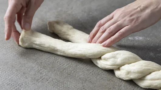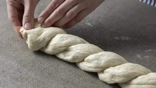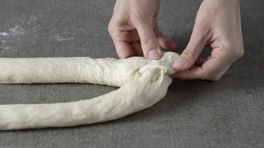 Step6Pinch the ends together to seal to make 1 long twisted rope of dough.