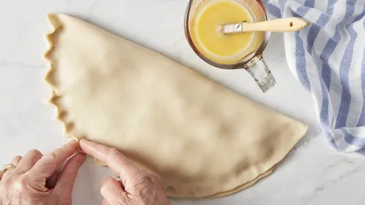 Have Extra Pillsbury™ Pie Crust? Use a small cookie cutter to make decorations out of your second pie crust in the package to attach to your turnover before baking, such as leaves or hearts. You can also get creative with how you flute your pie crust, whether pinching scalloped edges or adding a herringbone pattern with a fork. Use your imagination for the prettiest presentation.