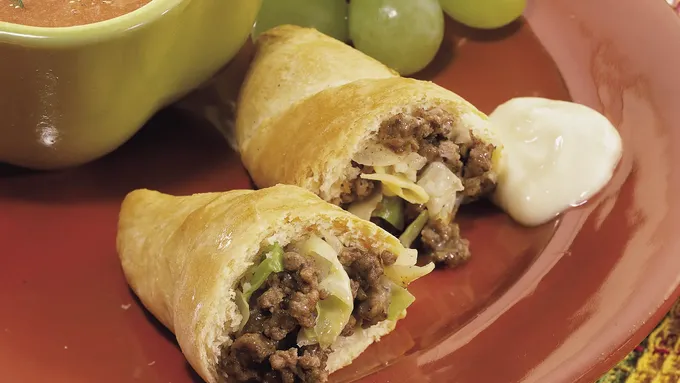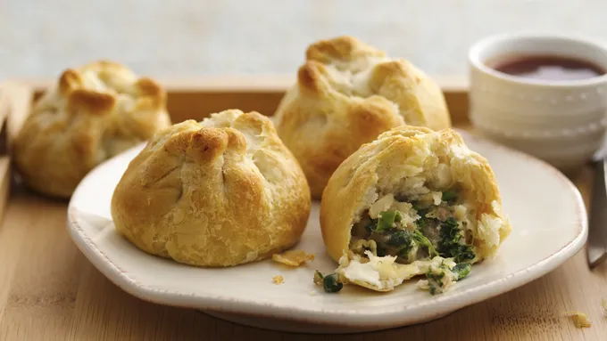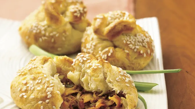 Baked biscuit bundles hide a flavorful treasure of a pork filling.