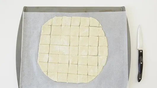 Step2Cut into 1 1/2-inch squares, then pull apart 1/8 inch. Bake 10 to 14 minutes or until golden brown. Cool completely on cookie sheet.
