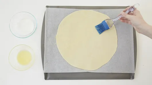 Step1Heat oven to 400°F. Line large cookie sheet with cooking parchment paper. Unroll pie crust on parchment paper. Spread melted butter on top of pie crust; sprinkle with granulated sugar.