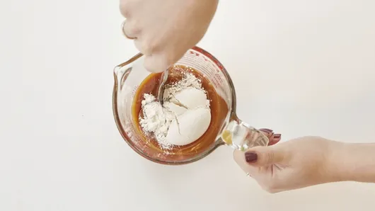 Step2Meanwhile, in measuring cup, mix caramel topping and flour until smooth.