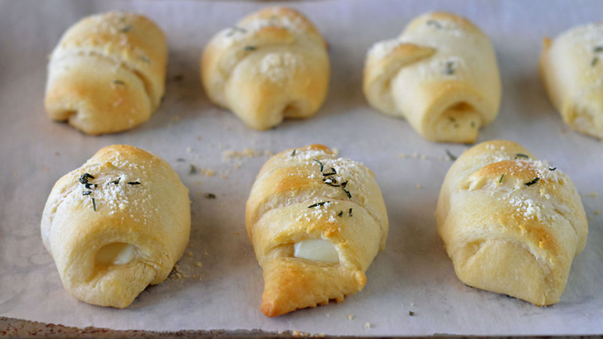 Golden rosemary crescents with a surprise cheesy center make an excellent side for your favorite soup.