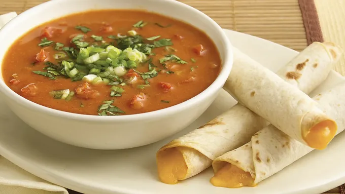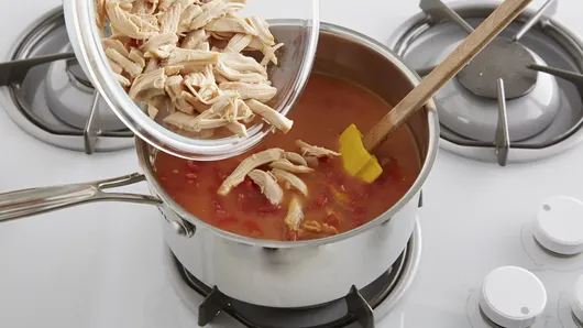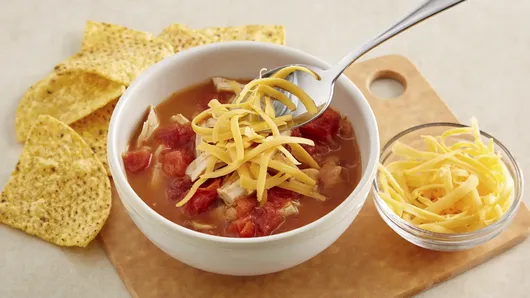 var configuration = {"title":"Easy Chicken Tortilla Soup","introduction":"This simple and flavorful Easy Chicken Tortilla Soup comes together in a snap! (That means dinner is on the table in under half an hour.) Beans, chicken and tomatoes cook in broth that takes on some big flavor, thanks to Old El Paso™ taco seasoning. Top your savory soup with cheese and crushed tortilla chips for a delicious, warm meal.","servingSize":"1 Serving","image":{"small":{"media":"(min-width: 0px)","src":"https://mojo.generalmills.com/api/public/content/p90_PJ_Tp0GqbhIlsI1vbw_webp_base.webp?v=2d2a0e34\u0026t=e724eca7b3c24a8aaa6e089ed9e611fd"},"medium":{"media":"(min-width: 500px)","src":"https://mojo.generalmills.com/api/public/content/p90_PJ_Tp0GqbhIlsI1vbw_webp_base.webp?v=2d2a0e34\u0026t=191ddcab8d1c415fa10fa00a14351227"},"large":{"media":"(min-width: 767px)","src":"https://mojo.generalmills.com/api/public/content/p90_PJ_Tp0GqbhIlsI1vbw_webp_base.webp?v=2d2a0e34\u0026t=191ddcab8d1c415fa10fa00a14351227"},"alt":"Easy Chicken Tortilla Soup"},"contributor":{"label":"By","name":"Pillsbury Kitchens","profileUrl":"/about-us","displayDate":{"label":"Updated","date":"May 24, 2022"}},"ingredientGroups":[{"ingredients":[{"quantity":"1","description":"can (16 oz) Old El Paso™ Traditional Refried Beans"},{"quantity":"2","description":"cups Progresso™ unsalted chicken broth"},{"quantity":"1","description":"can (14.5 oz) petite diced tomatoes"},{"quantity":"2","description":"cups shredded deli rotisserie chicken"},{"quantity":"1","description":"packet (1 oz) Old El Paso™ Original Taco Seasoning Mix"},{"quantity":"1/4","description":"cup shredded Cheddar cheese (1 oz)"},{"quantity":"1","description":"cup crushed tortilla chips"}]}],"steps":[{"description":"In 3-quart saucepan, mix beans, broth, tomatoes, chicken and taco seasoning mix. Heat to boiling over medium-high heat. Cover; reduce heat to low. Cook 10 minutes, stirring occasionally to blend flavors.","stepShotImageUrl":"//mojo.generalmills.com/api/public/content/oWpEztaKske_BDggkecISQ_webp_base.webp?v=1619a74a\u0026t=51a43a57af4046789e5a7f20567b1195"},{"description":"Serve with cheese and tortilla chips.","stepShotImageUrl":"//mojo.generalmills.com/api/public/content/uDepWrLBA0WB9eN9y5S9OQ_webp_base.webp?v=7c8bf182\u0026t=51a43a57af4046789e5a7f20567b1195"}],"tips":[{"title":"","description":"We made this Easy Chicken Tortilla Soup recipe particularly convenient by using shredded rotisserie chicken—which you can find at your grocery store.","category":"Recipe/Ingredient Facts","tipShots":[]},{"title":"","description":"Top off this easy soup with a sprinkle of fresh cilantro or green onion. Or, add a dollop of sour cream, not only will it look great, it will taste even better. ","category":"Serving Suggestions/Menu","tipShots":[]},{"title":"","description":"This easy chicken tortilla soup checks all the boxes: it’s packed with flavor, ready in less than 30 minutes and is all made in one pot. Score! Why go to the restaurant to order it when it’s that easy to make (and requires close to no cleanup)? \r\n\r\nYou can make things easy on yourself and use pre-cooked rotisserie chicken like this recipe suggests, but if you have a few chicken breasts in your freezer, you can cook those up for this soup too. Allow them to defrost overnight, then sprinkle with some extra taco seasoning and bake them in the oven at 375°F for about 30 minutes or until the center reaches 165°F. Then just shred the chicken and add them to your soup.\r\n\r\nIs chicken your favorite dinner protein? You’ll never run out of chicken soup ideas, thanks to our \u003ca href=\u0022https://www.pillsbury.com/recipes/dish-type/soup/chicken\u0022 target=\u0022_blank\u0022\u003e long list of recipes\u003c/a\u003e Once you’ve picked out a few, don’t forget to read \u003ca href=\u0022https://www.pillsbury.com/everyday-eats/dinner-tonight/ways-to-take-your-soup-up-a-notch\u0022 target=\u0022_blank\u0022\u003e this article\u003c/a\u003e for tasty topping ideas and side dishes to round out your meal.","category":"Editorial","tipShots":[]},{"title":"","description":"Kitchen Tested - 3/2016.","category":"Kitchen Tested","tipShots":[]},{"title":"","description":"Garnish each bowl of chicken tortilla soup with cilantro or green onion.","category":"Recipe/Ingredient Facts","tipShots":[]},{"title":"","description":"Add a dollop of sour cream or plain Greek yogurt to each bowl for extra creaminess.","category":"Serving Suggestions/Menu","tipShots":[]},{"title":"","description":"If you like things extra spicy, try adding 1/4 tsp of cayenne pepper or a few dashes of hot sauce to your Easy Chicken Tortilla Soup alongside the taco seasoning.","category":"Serving Suggestions/Menu","tipShots":[]}],"kitchenTips":[{"title":"","description":"We made this Easy Chicken Tortilla Soup recipe particularly convenient by using shredded rotisserie chicken—which you can find at your grocery store.","category":"Recipe/Ingredient Facts","tipShots":[]},{"title":"","description":"Top off this easy soup with a sprinkle of fresh cilantro or green onion. Or, add a dollop of sour cream, not only will it look great, it will taste even better. ","category":"Serving Suggestions/Menu","tipShots":[]},{"title":"","description":"Garnish each bowl of chicken tortilla soup with cilantro or green onion.","category":"Recipe/Ingredient Facts","tipShots":[]},{"title":"","description":"Add a dollop of sour cream or plain Greek yogurt to each bowl for extra creaminess.","category":"Serving Suggestions/Menu","tipShots":[]},{"title":"","description":"If you like things extra spicy, try adding 1/4 tsp of cayenne pepper or a few dashes of hot sauce to your Easy Chicken Tortilla Soup alongside the taco seasoning.","category":"Serving Suggestions/Menu","tipShots":[]}],"additionalContent":[],"faq":[],"tipCategories":[{"categoryName":"Editorial","heading":"More About This Recipe","cssClass":"recipePartStory","expandOnInit":false,"expandText":"Mo