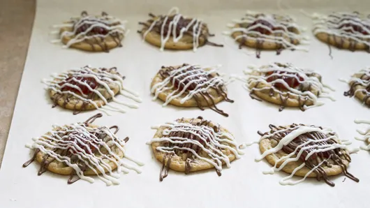 Give your chocolate chippers some extra love this Valentine's Day with a sweet jam center and double-chocolate drizzle.