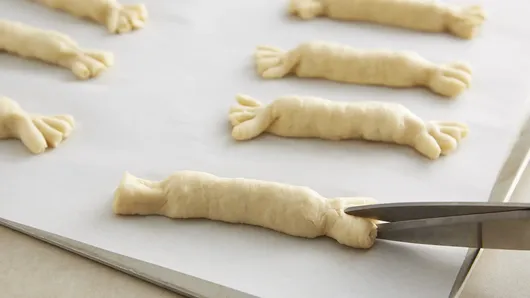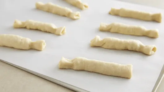 Step3Pinch each end about 1/2 inch from edges to seal dough. Place seam side down.