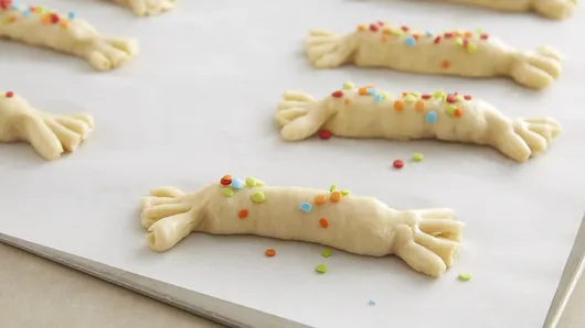Step5Brush dough with melted butter, then sprinkle with candy sprinkles. Bake 10 to 12 minutes or until golden brown.