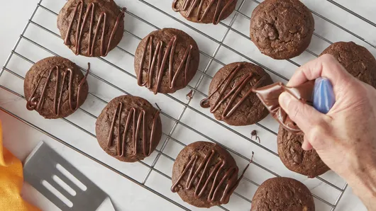 What’s better than coffee and chocolate? Coffee and chocolate with more chocolate! Once the espresso cookies have cooled, top them with a drizzle of melted semisweet chocolate. Let the chocolate drizzle set completely, about one hour, before eating the cookies. (We know it’s hard, but it’s worth the wait.)