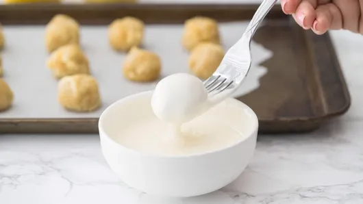 Step3Bake 10 to 12 minutes or until edges begin to lightly brown. Cool 5 minutes; shape into balls. Refrigerate balls 10 to 15 minutes.