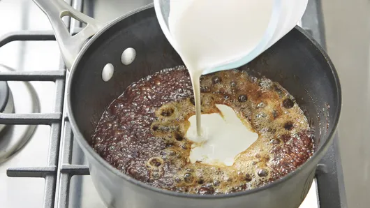 Step2Reduce heat to low; slowly and carefully stir in whipping cream and vanilla. Return heat to medium; heat to simmering. Cook 2 to 3 minutes, stirring constantly, until thickened. Let stand 10 minutes. Cover and refrigerate any remaining sauce.