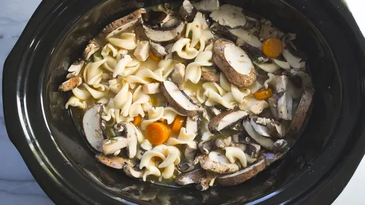 Step2Place 4 large boneless skinless chicken breasts in slow cooker; sprinkle 2 tablespoons chopped fresh oregano leaves over top. Add 4 cloves finely chopped garlic, 2 cans Progresso™ Rich & Hearty chicken & homestyle noodle soup, 1 lb sliced fresh mushrooms and 1/4 cup Marsala wine. Season to taste with salt and pepper. Stir making sure all ingredients are covered.