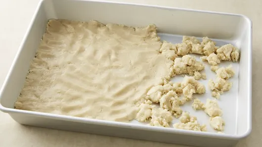 Step1Heat oven to 350°F. Press cookie dough evenly into bottom only of ungreased 13x9-inch pan. If dough is sticky, use floured fingers. (DO NOT EAT RAW COOKIE DOUGH AFTER PRESSING DOUGH IN PAN WITH FLOURED FINGERS.)
