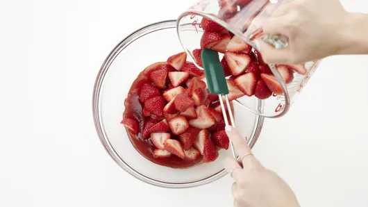 Step3Add strawberries to cooled jam mixture; mix until evenly coated. Spoon mixture into cooled baked shell. Refrigerate until set, about 2 hours.